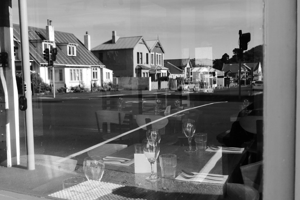 - The windows of St David Cafe (a cafe on Otago University campus) reflects the silence of lockdown during March-May 2020. Normally there’s at least a few people at those picnic tables, catching up over a cup of coffee or studying on their laptop.